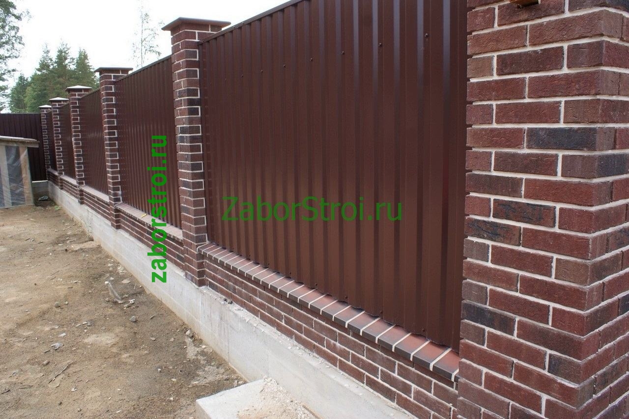 Заборы из профнастила с кирпичными столбами 8 соток